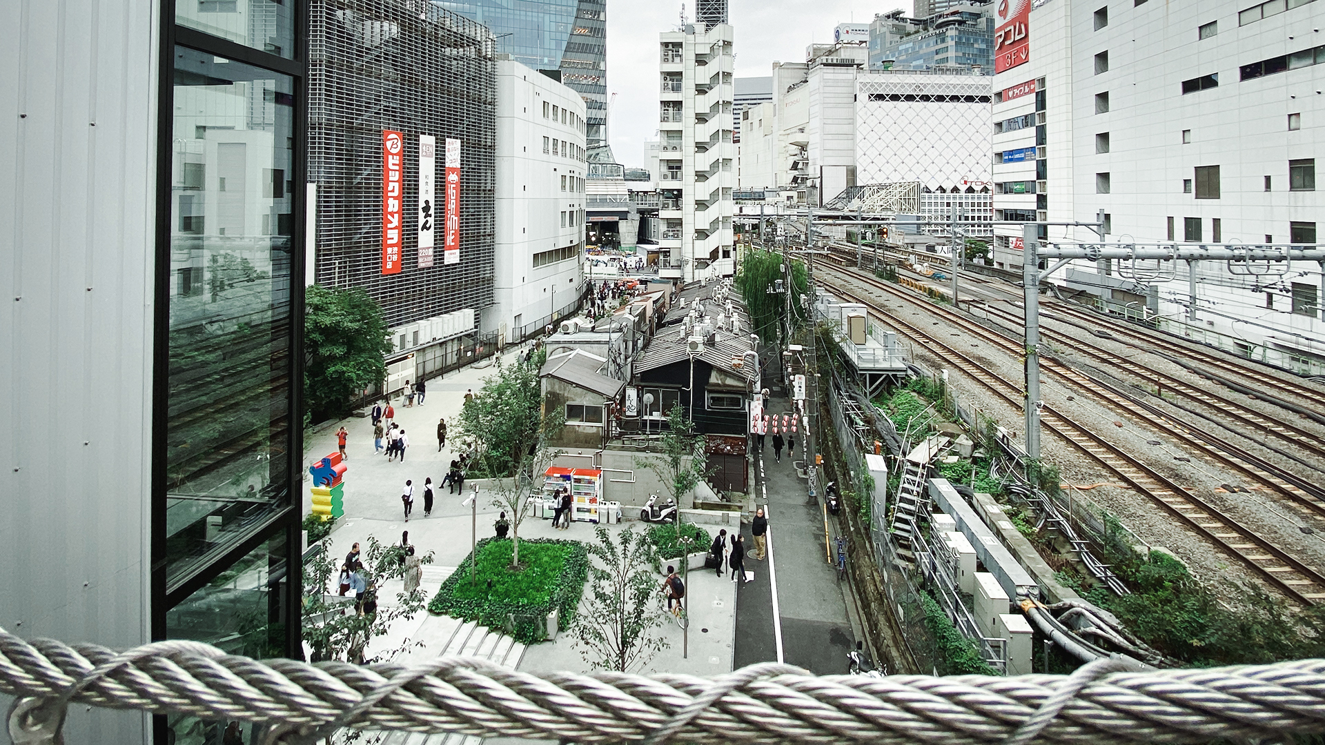 もうここの上空権をつかって かっこよく駅までつないじゃえばいいじゃないか。
