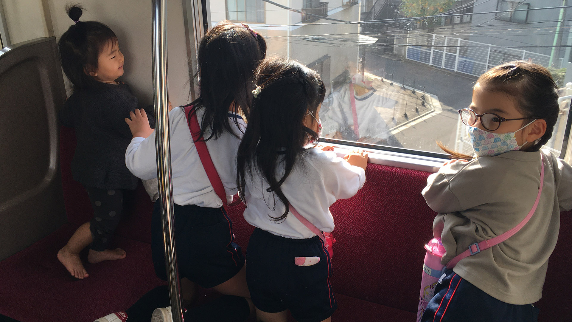 電車に乗って幼稚園は遠足。