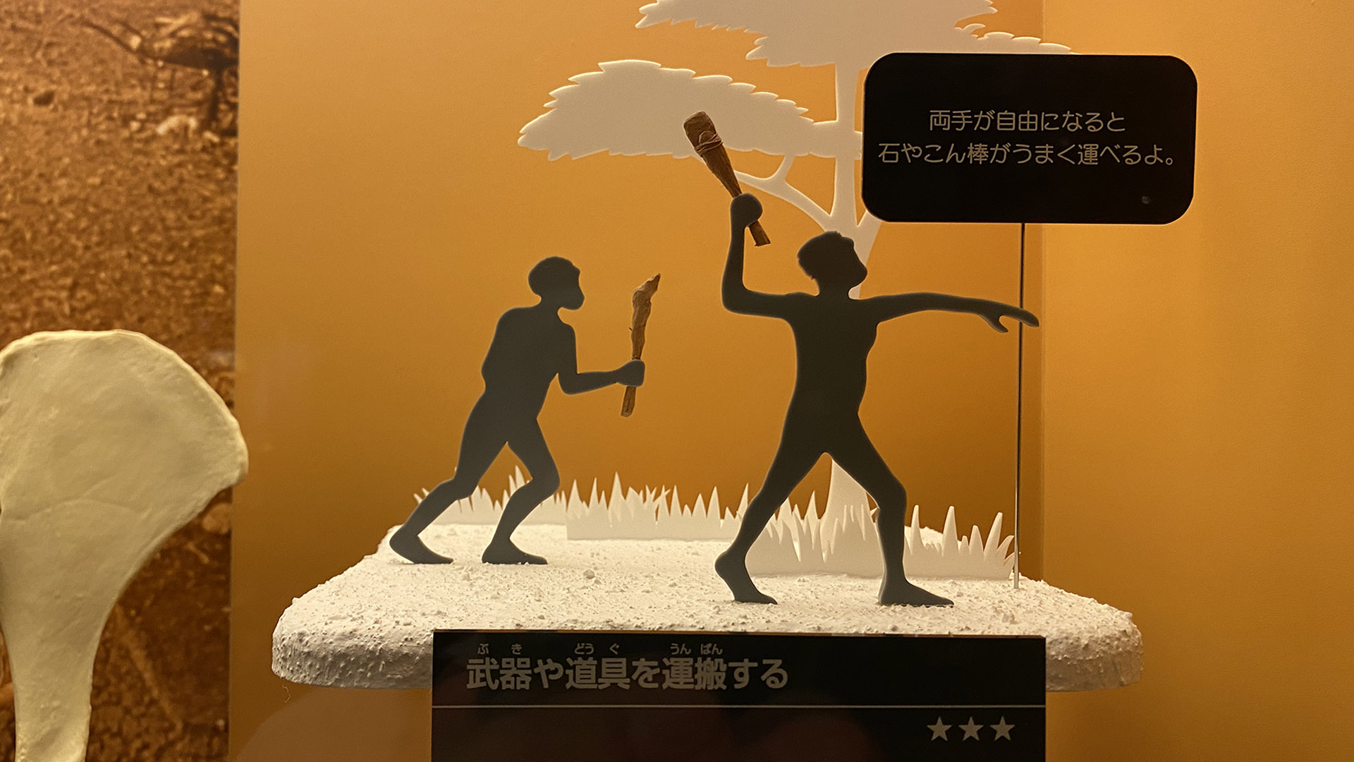 両手が自由になることで 道具を運ぶという進化を学ぶ。
