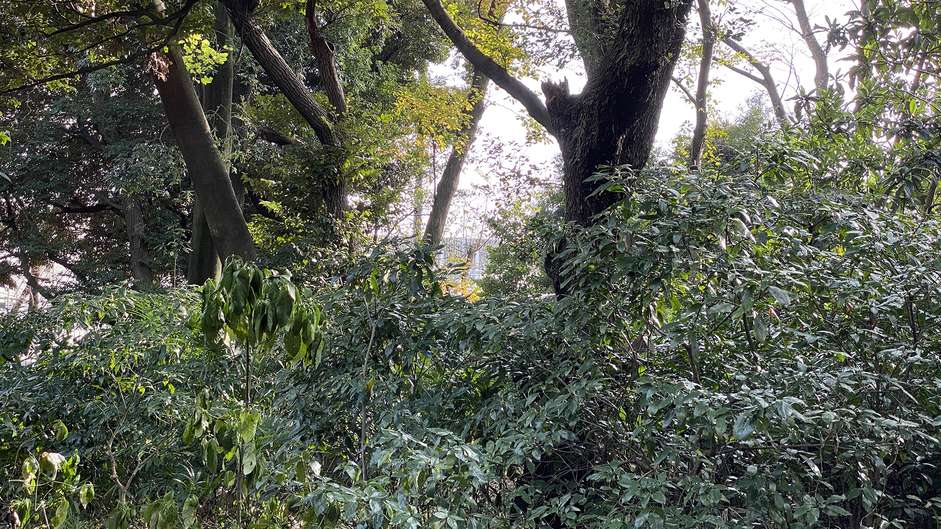 この藪のさきにみえるのは 国立競技場。 こんなところでみつけられるのは自分しかいないのでは?・・ というのも 景観協議用に数年前 おなじところから調査写真を撮ったから。 シミュレーション合成通りに見えてるでしょ。。
