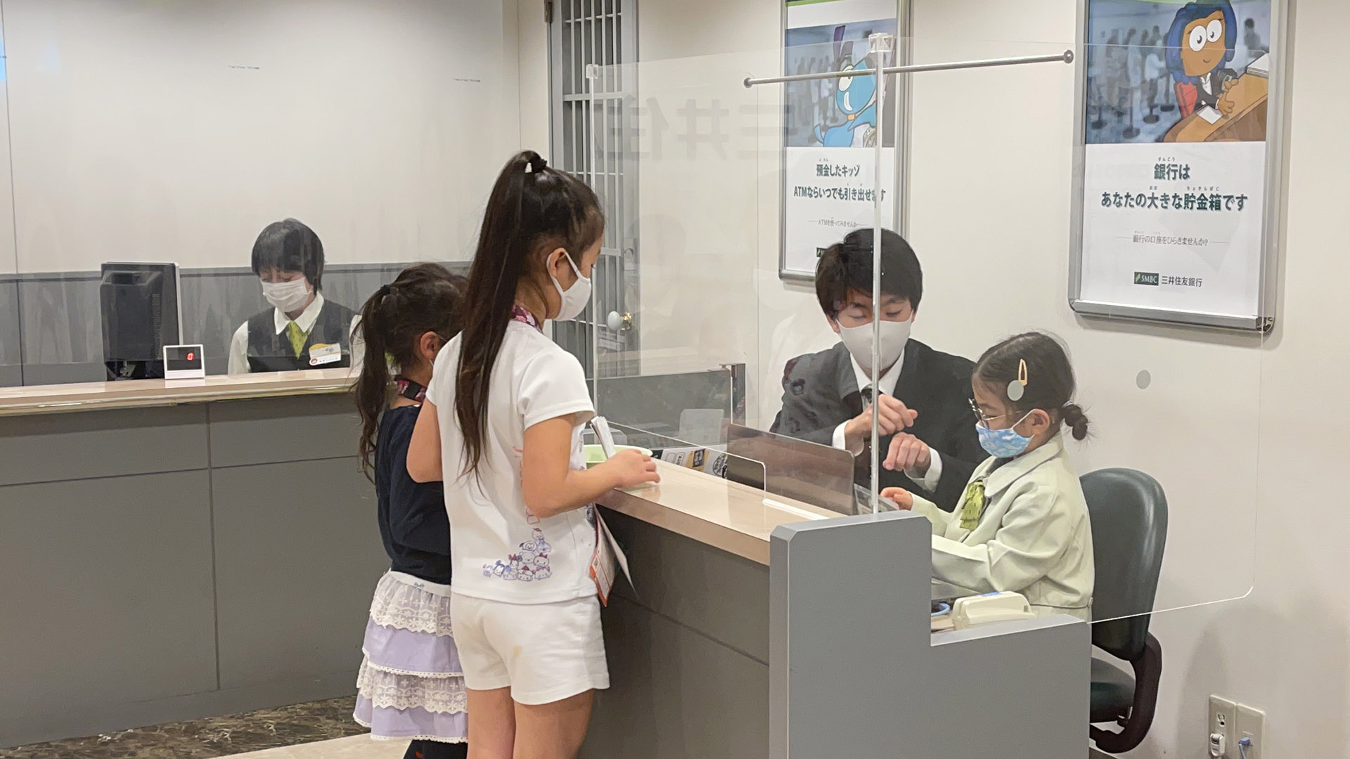 銀行員も体験。