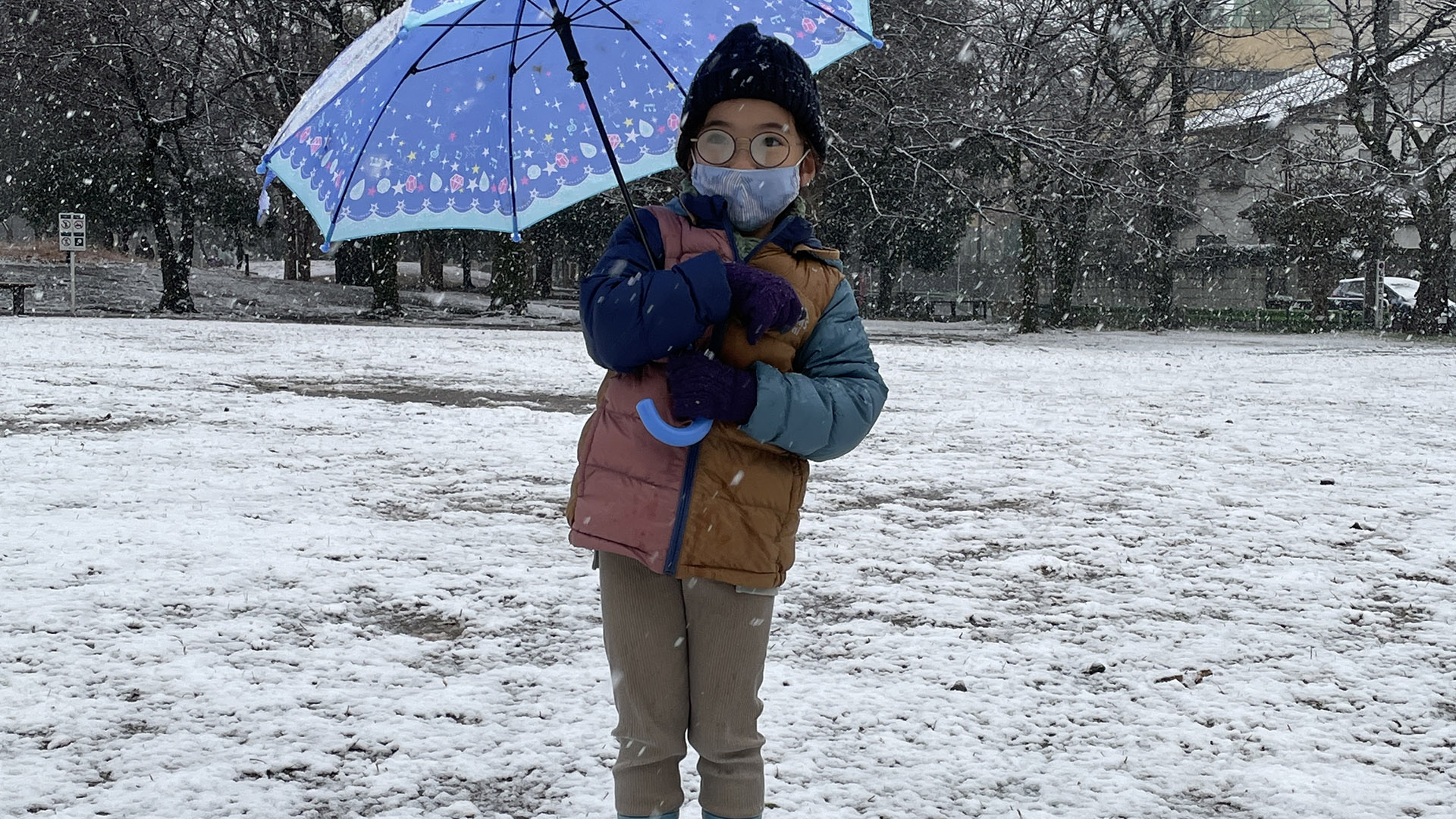 雪が降っいるので 公園に来ています。どこまで積もるだろう。