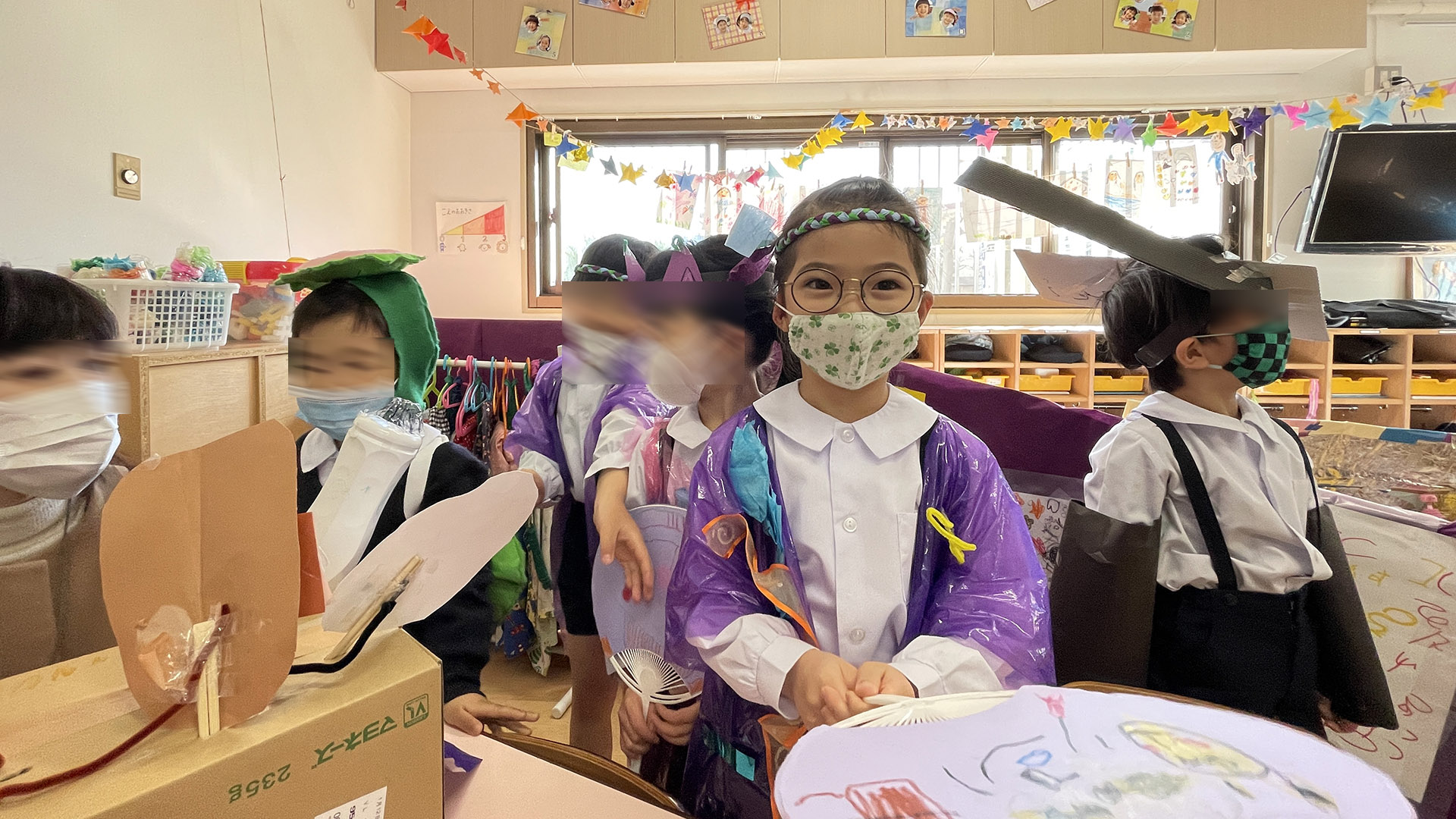 半纏を羽織り、サービス精神満点でまちかまえているようです。