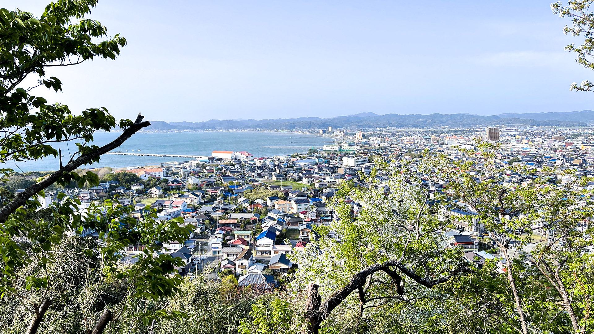 よく見る館山の風景・ 鏡ケ浦を妻と子に見せる。