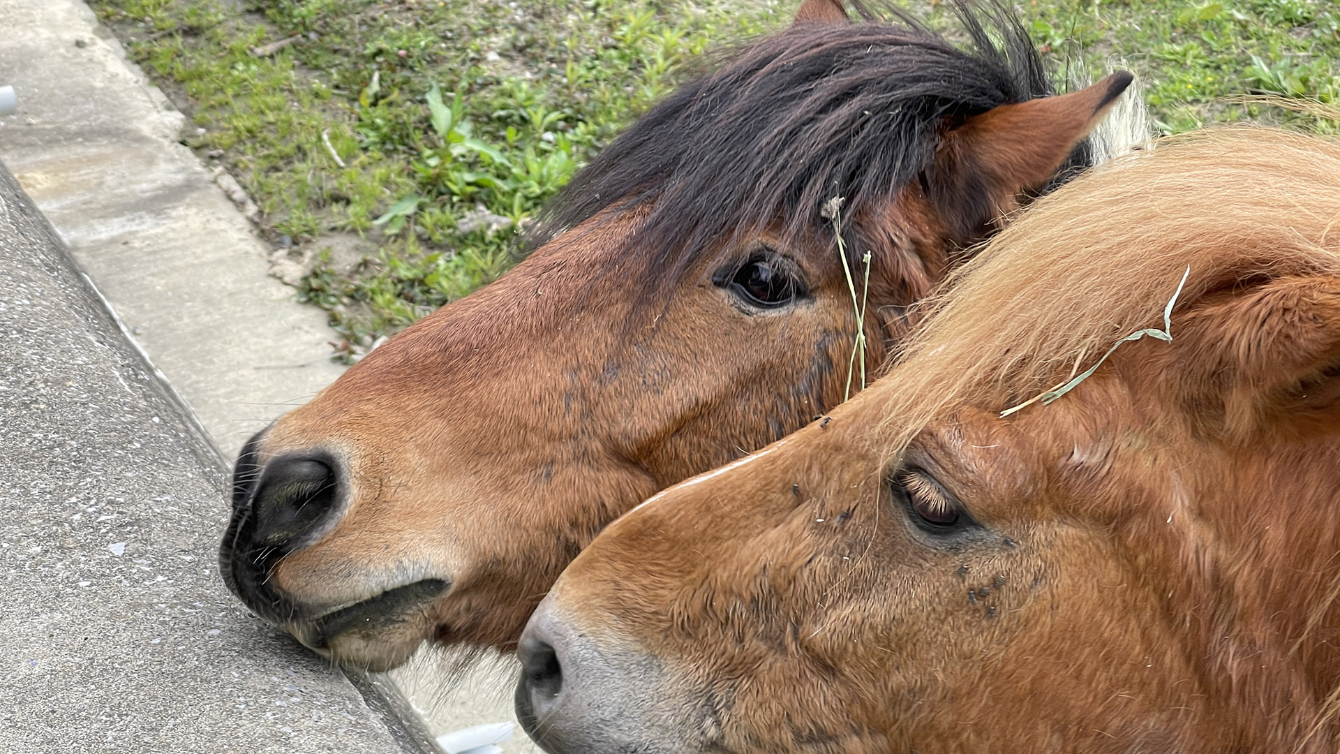 餌やり体験をさせてもらって 間近でみる馬の目はかわいいねぇ。