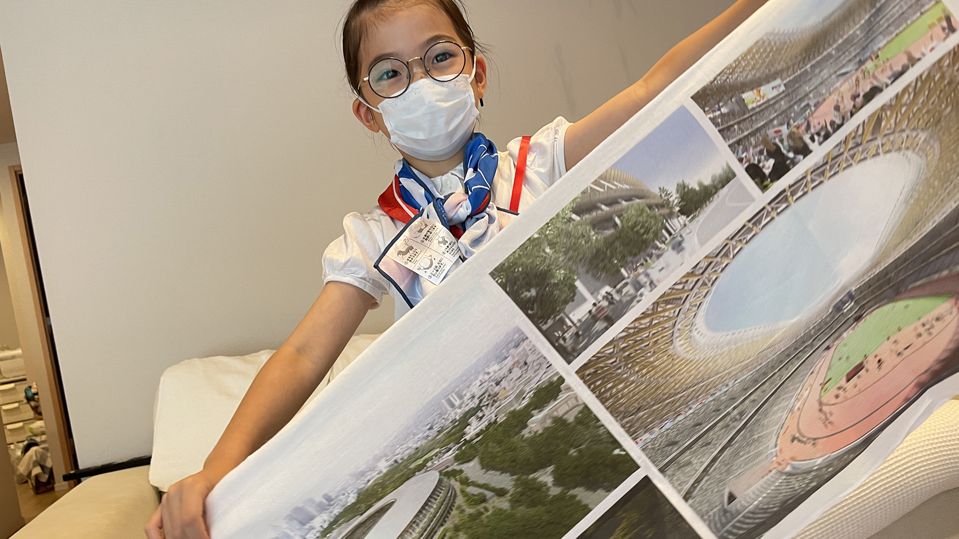 無観客にならなければ チケット6枚 陸上の予選が当たっていました。 うち三人と いとこを連れて会場内にはいることを楽しみにしていたのになぁ・・ ということで 応援グッズに身を包み こんな感じになりました。