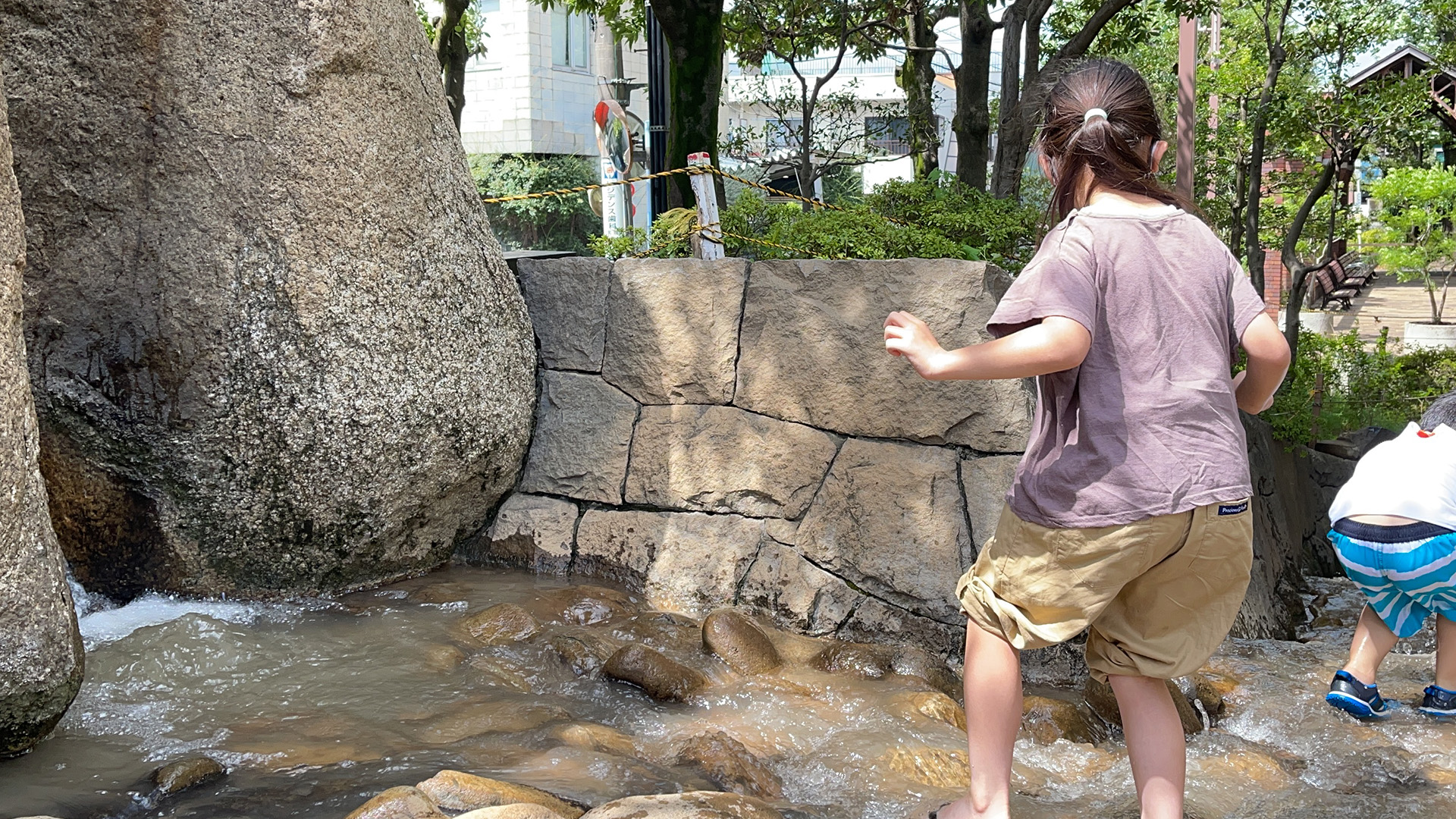 コロナ自粛でほとんどが止まっていた 水遊びの公園が復活していたので