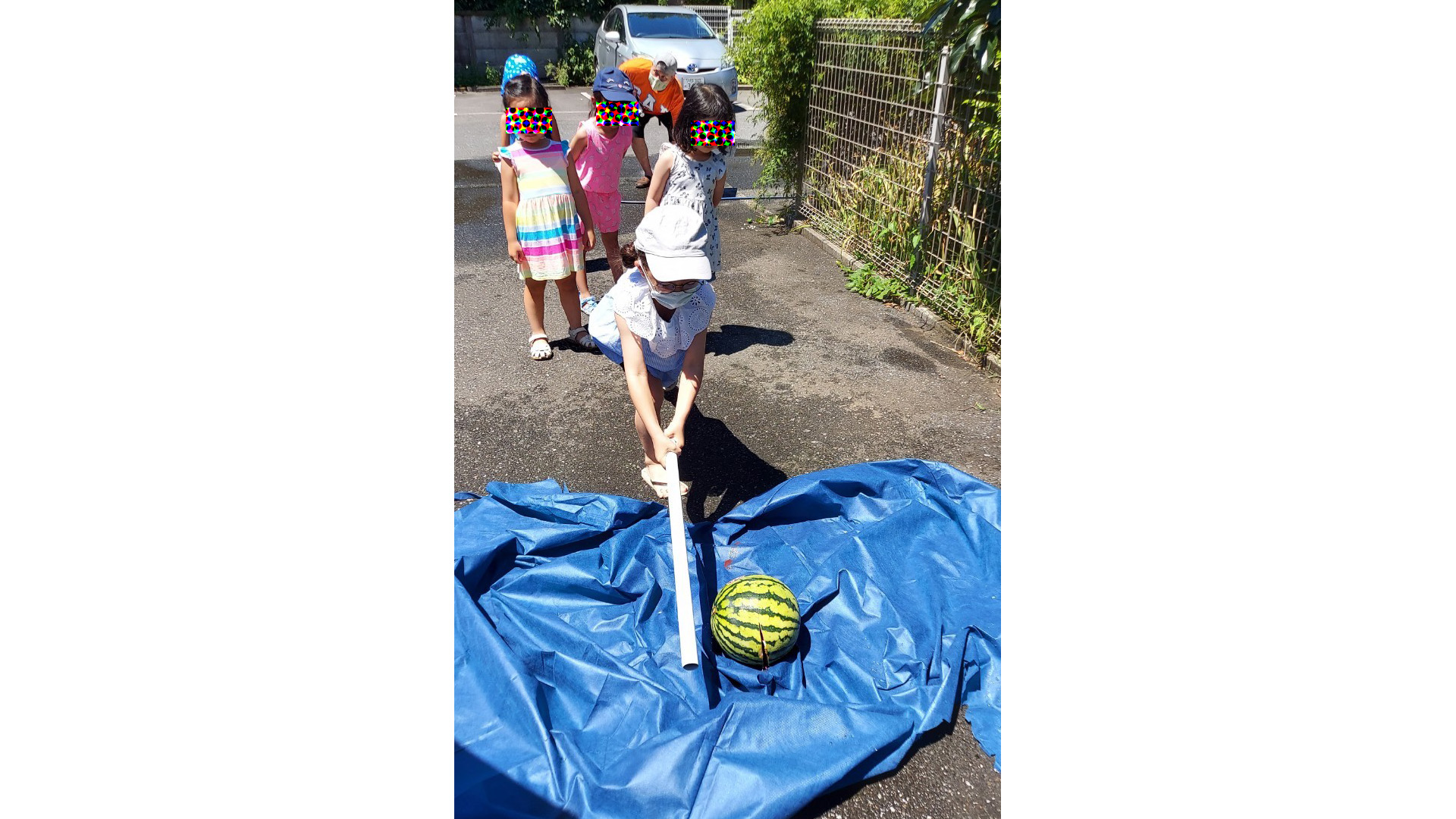 友達の誘いの誘惑に負けて、スイカ割りに行きました。