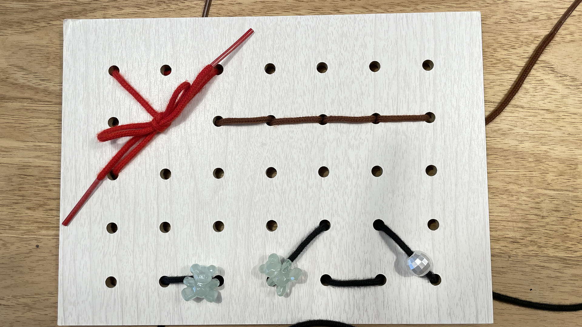 穴の順番をうまく考えないと 紐が短くて結べなかったりする。