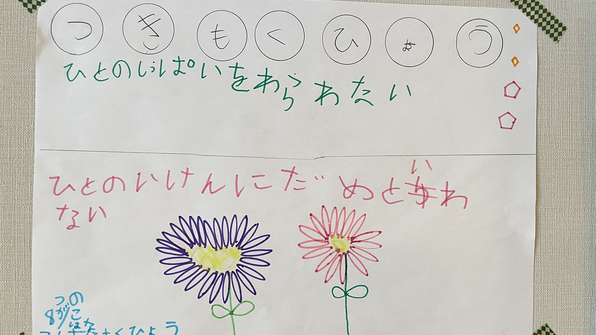 幼稚園で目標をかいた。