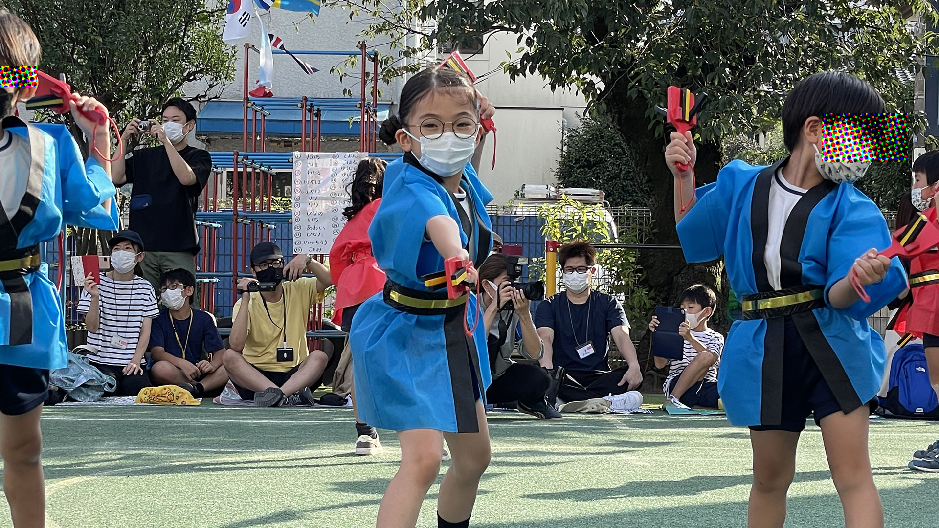 よさこいの鳴子を手に持ちかっこよく踊れてますよ。