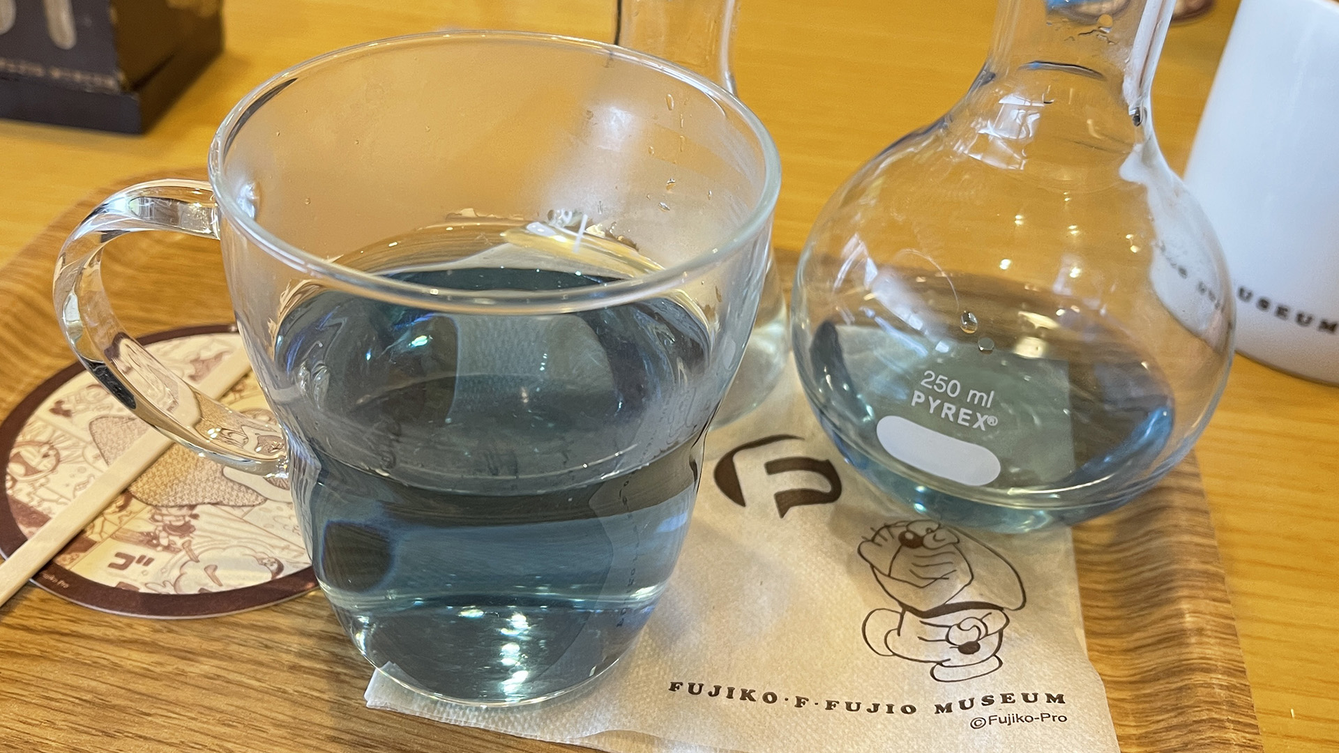 ビーカーで色の変わる紅茶実験もしています。