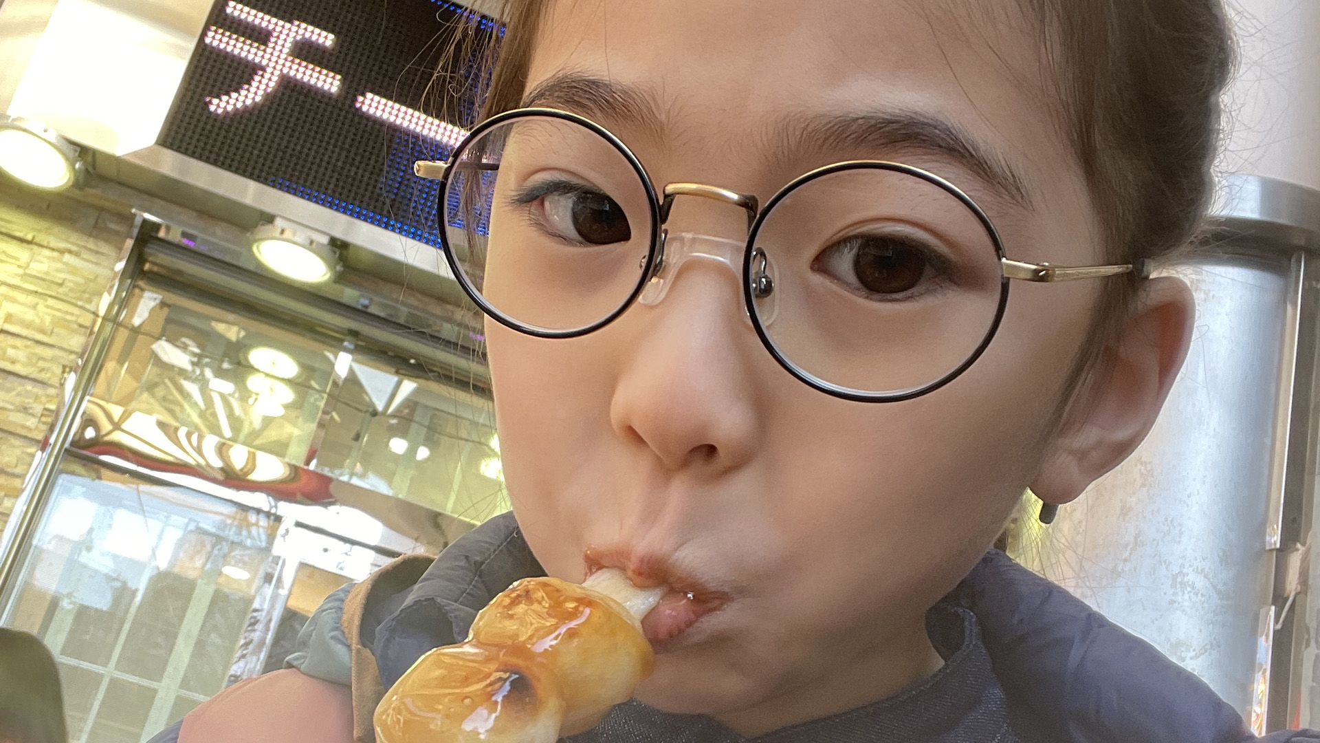 商店街でみたらし団子を食べ歩き