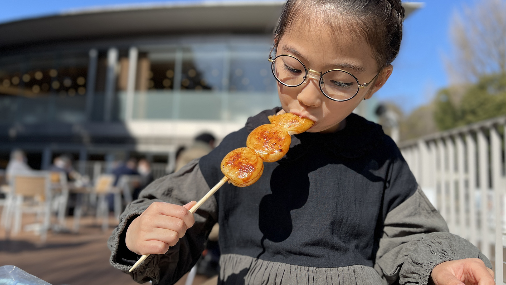 五平餅もほおばってます。
