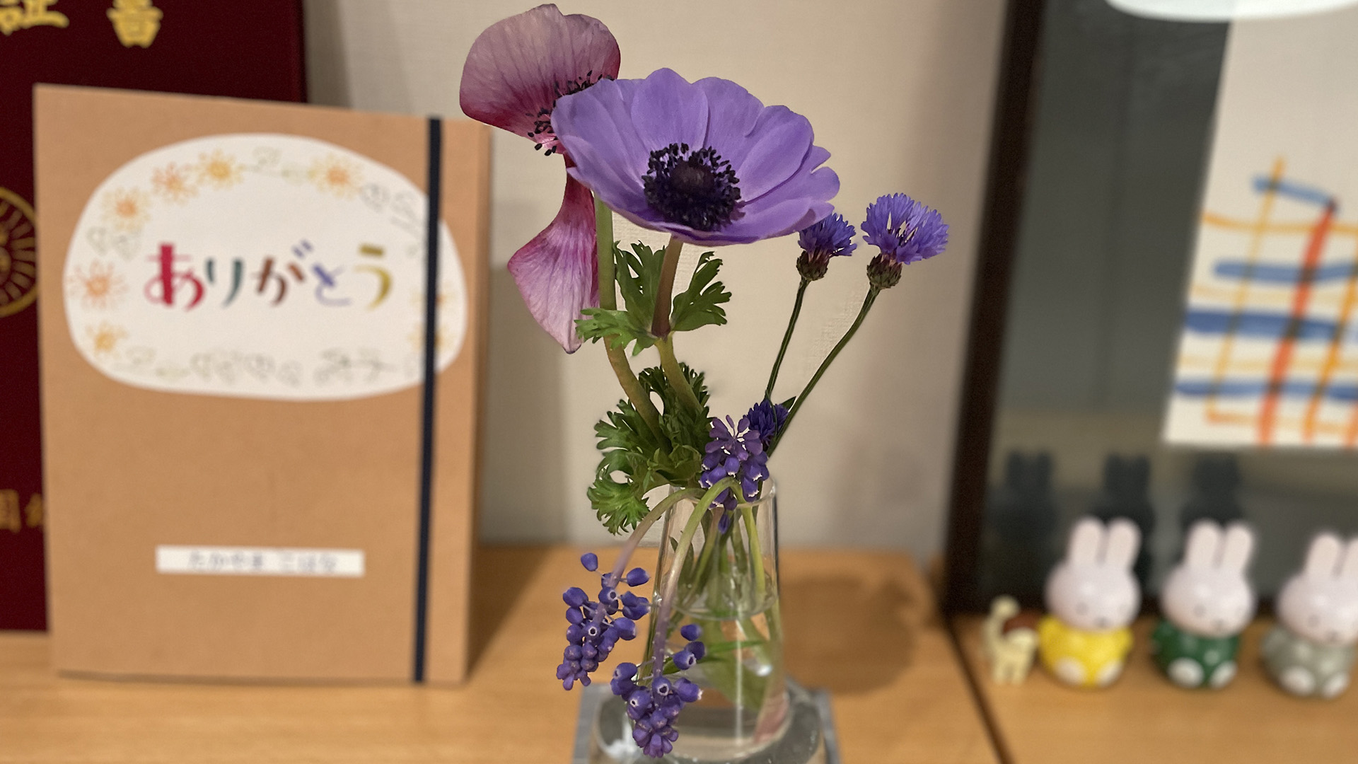 ふーちゃんガーデンで摘んできたアレンジメント。