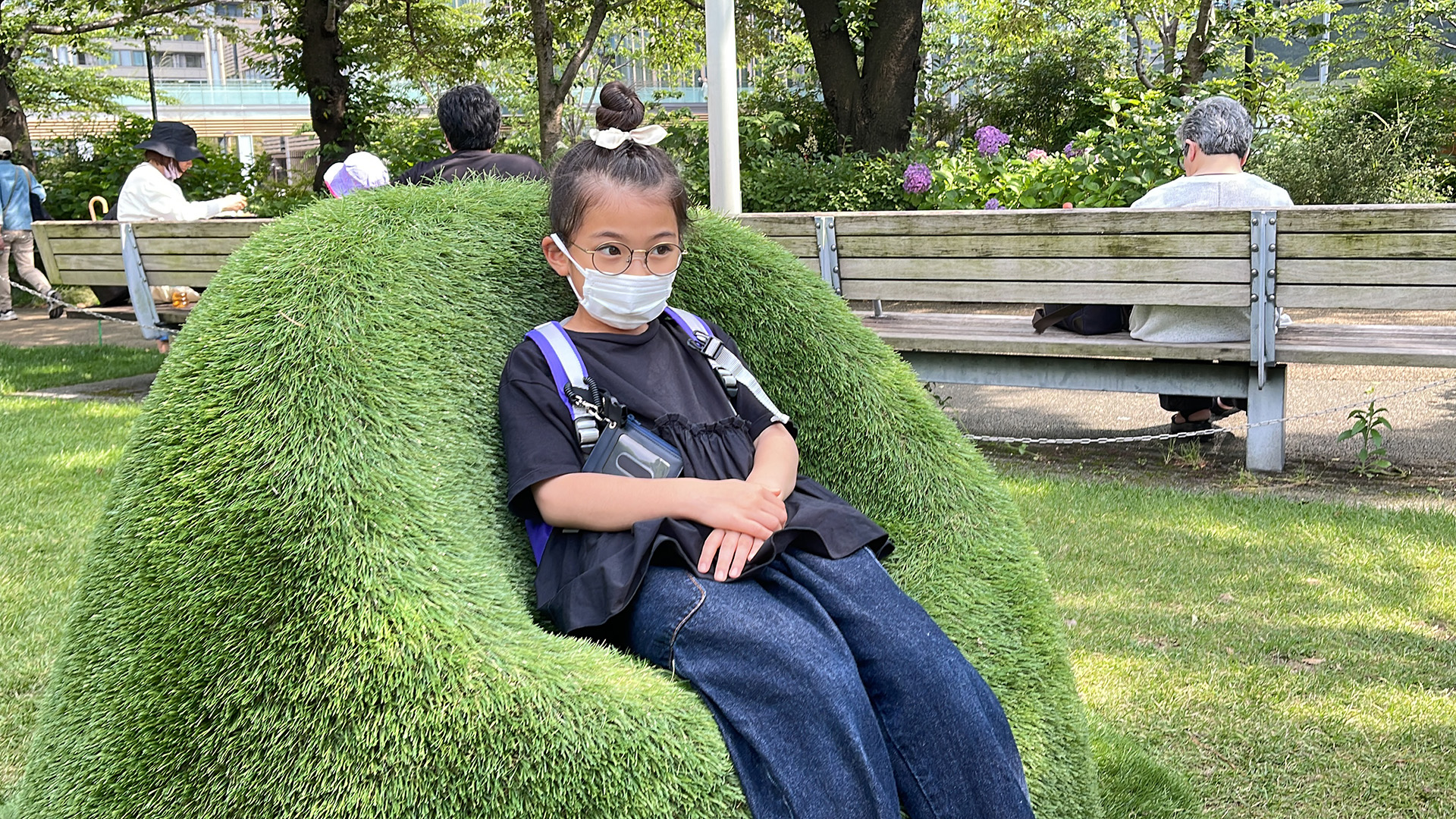 強制的に緑を感じなければいけないイベント。ちょっとちくちくの椅子。