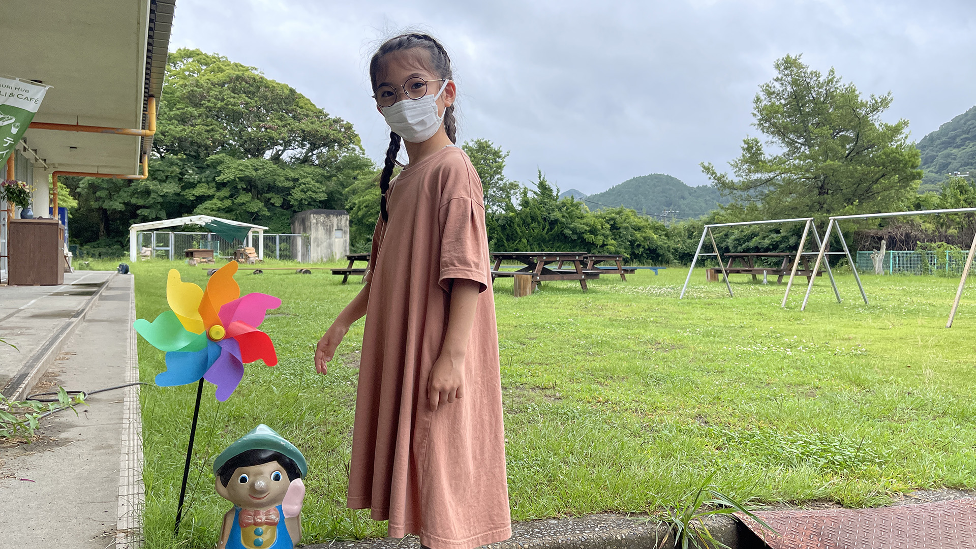 荷物と宿泊の部屋を確認したらちょっと探検に出かけよう。早速こびととの出会い。