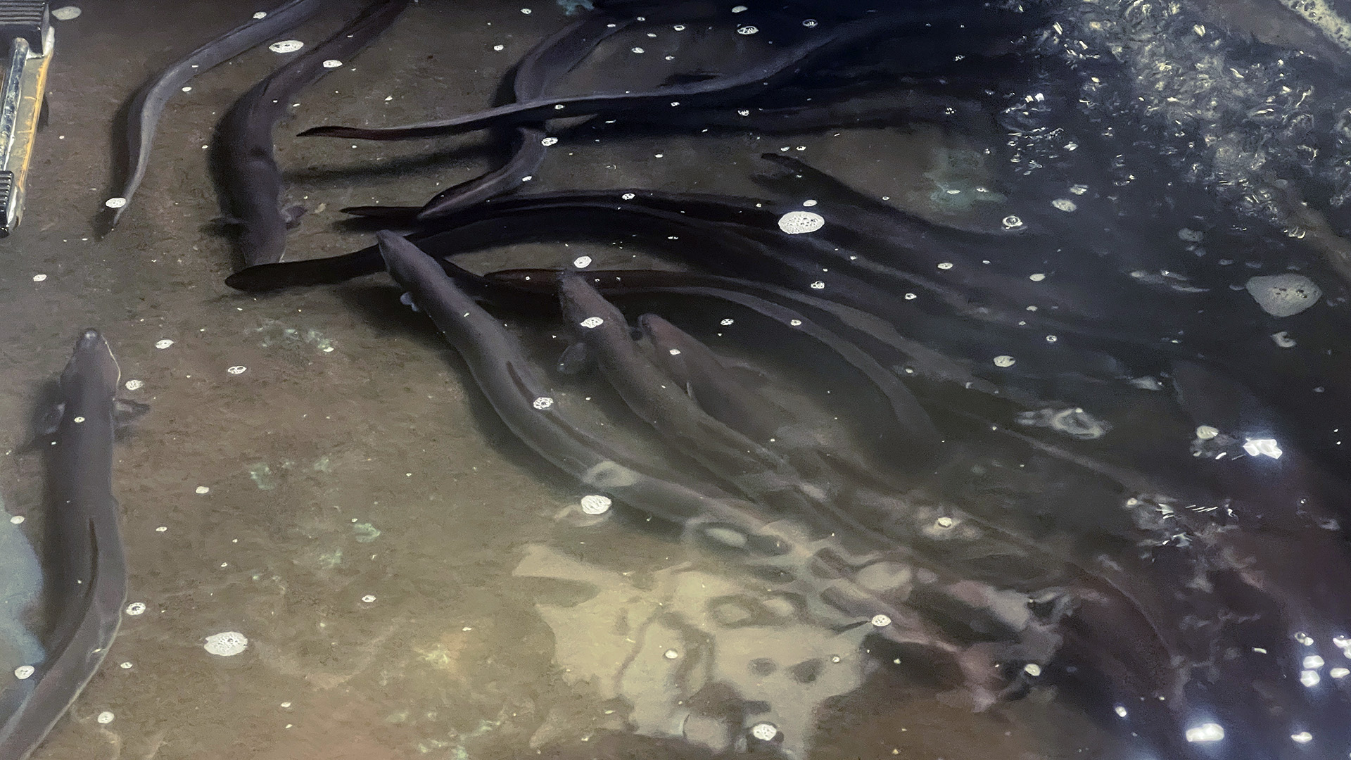 立派なウナギがいけすにいます。