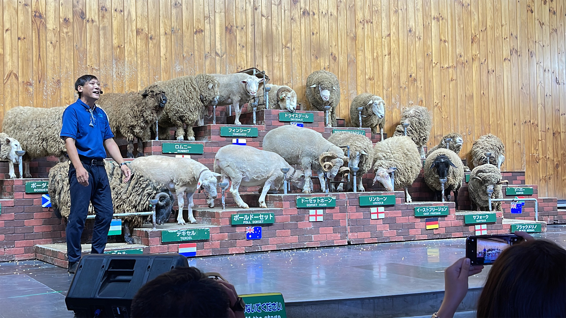 おもったよりも どんどん積み重なる羊たち。面白いショーです。