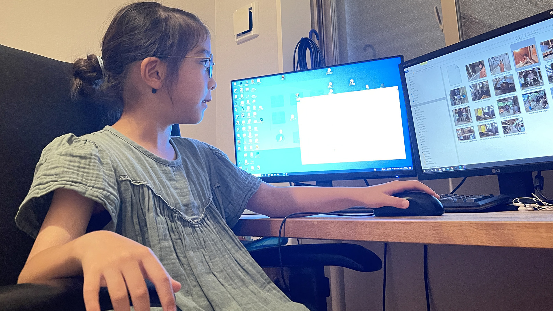 自由研究をまとめるかぁ。。っていってデスクの前に座ったところ。