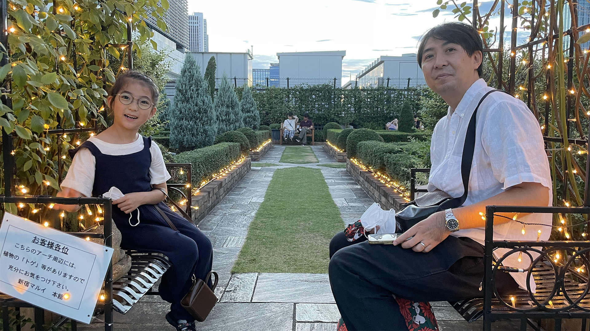 メガネ修理のついで。伊勢丹屋上の夕涼み。