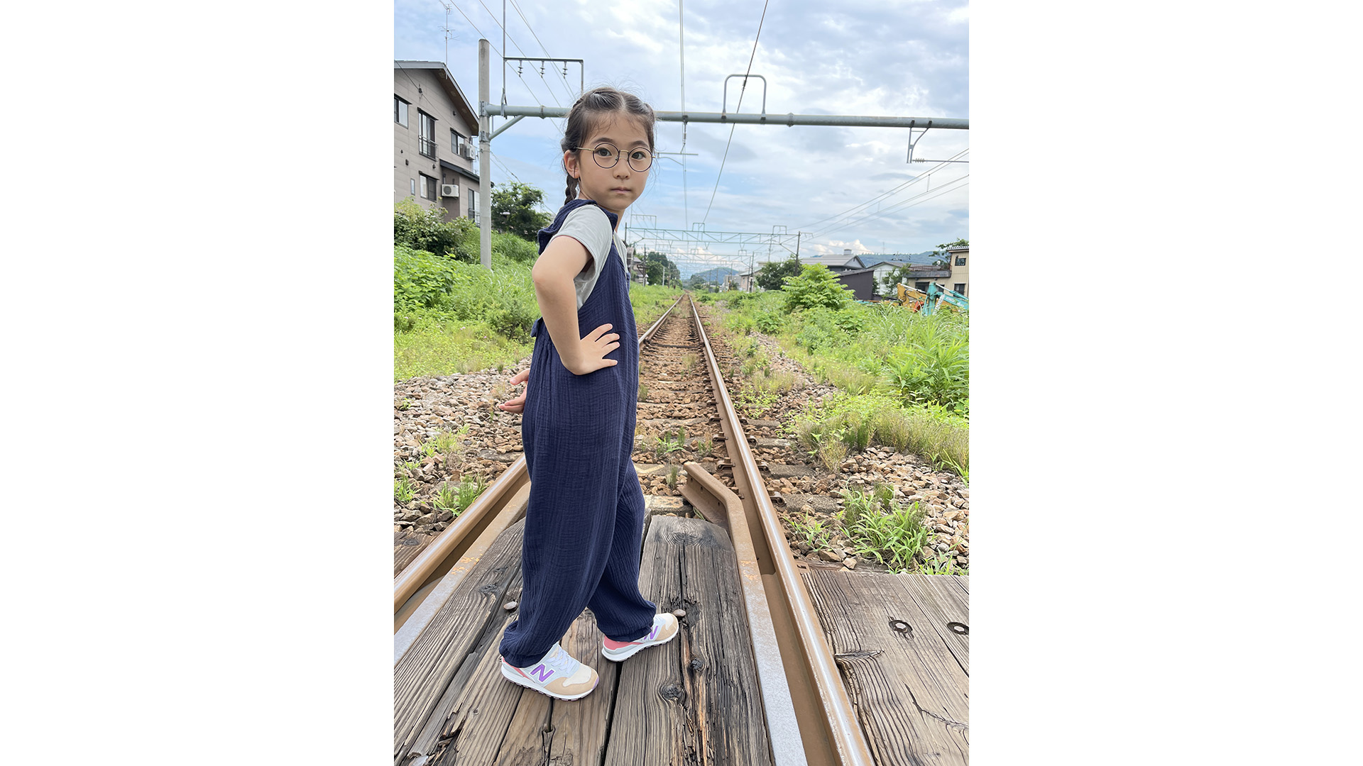 単線の踏切のない線路を横断。