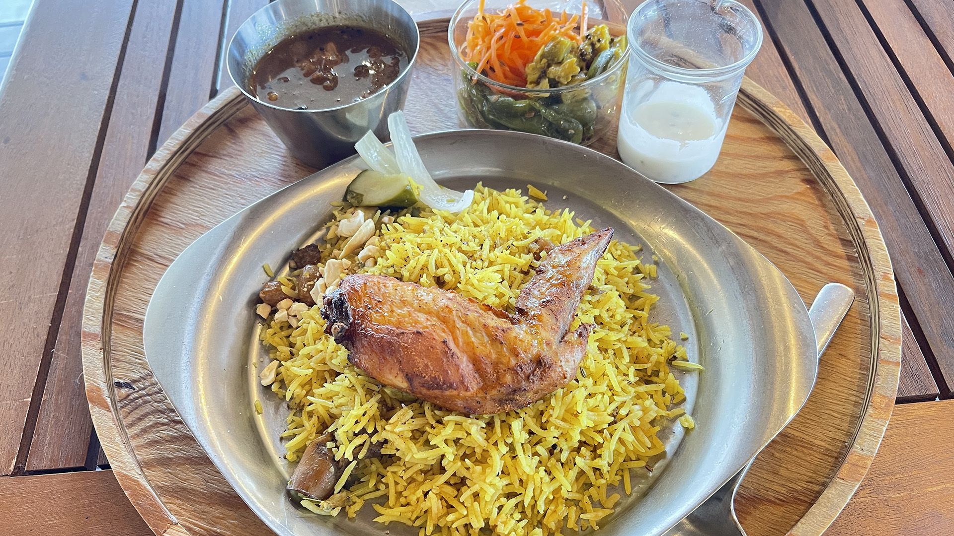 三条スパイス研究所は結構本格的なカレーです。 酸っぱい付け合わせも美味。