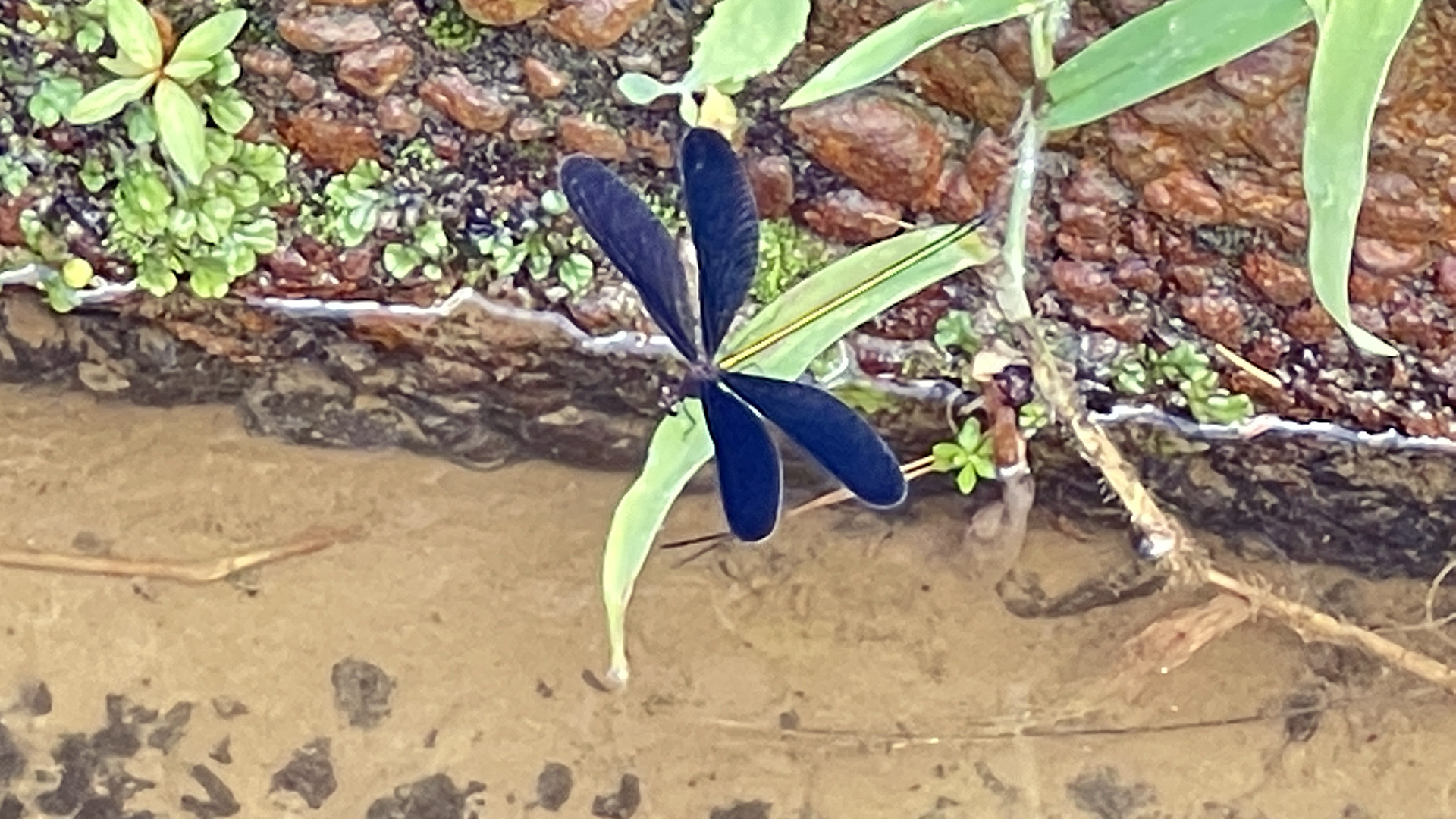 カワトンボの一種、「ハグロトンボ」が醤油の街のせせらぎにあいますねぇ。
