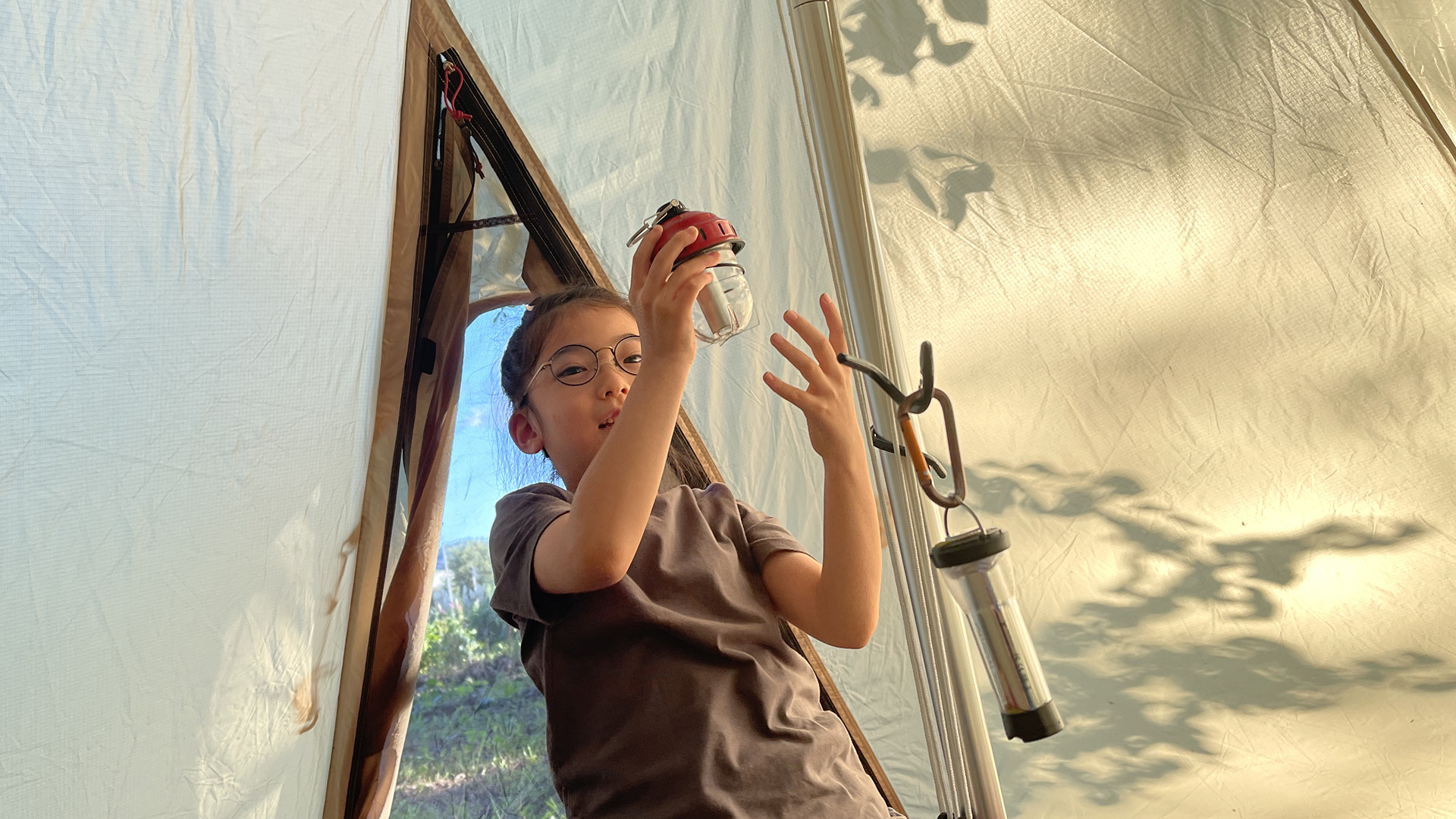 USB式のランタンの使い方を教えてもらい、早く夜にならないかと