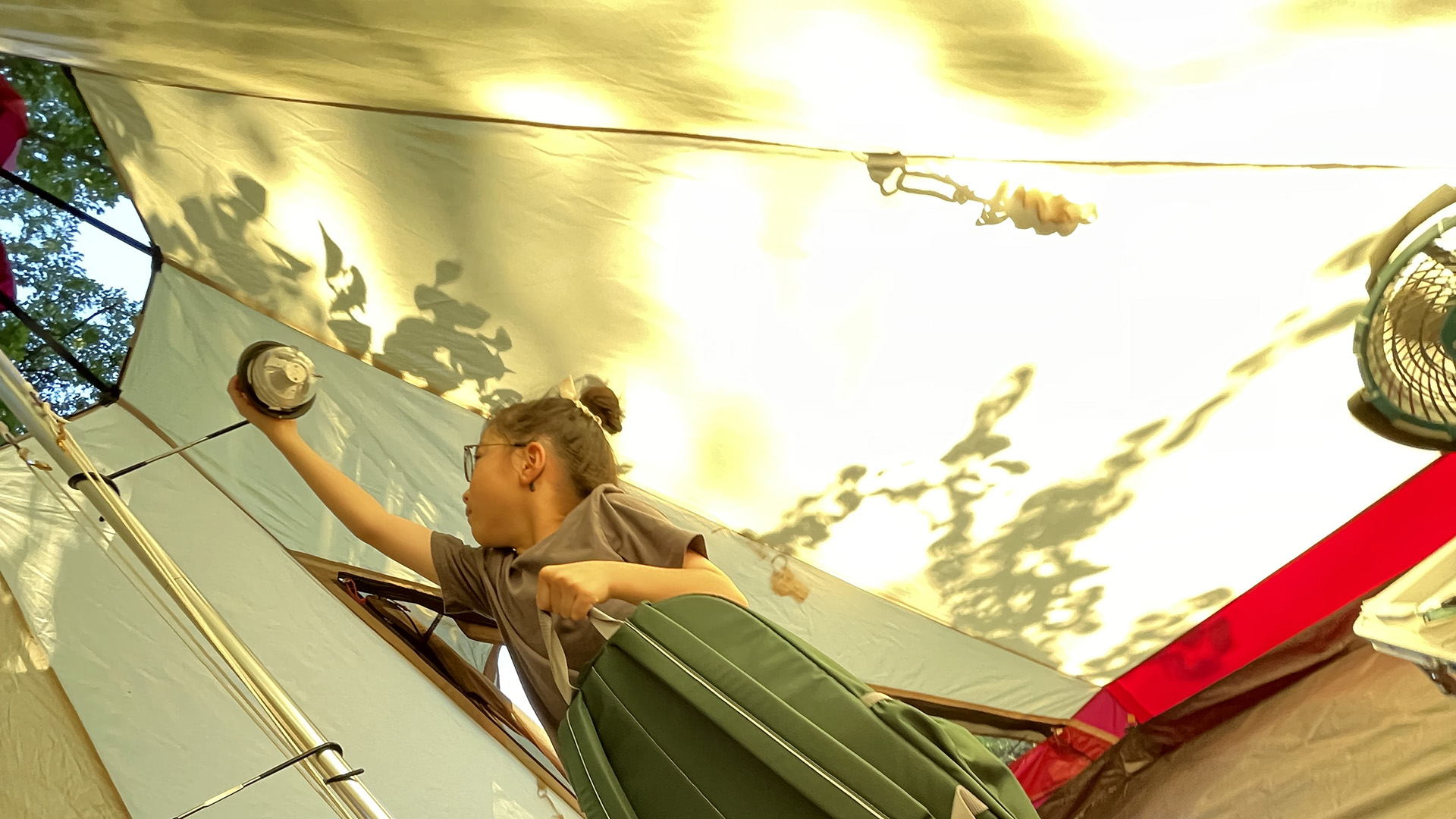 今日ここで寝るんでしょ? と何度も確認しているところ。