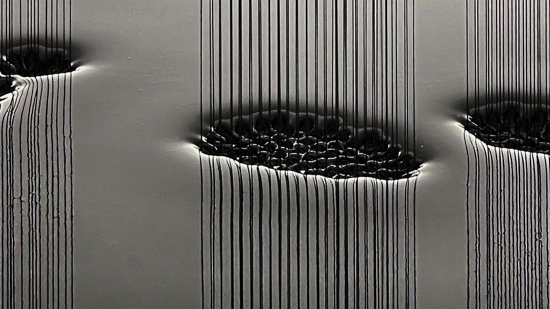 黒い液体は ぬめっとして、着水のところが蜂の巣のようにも見え、蓮のようだ。