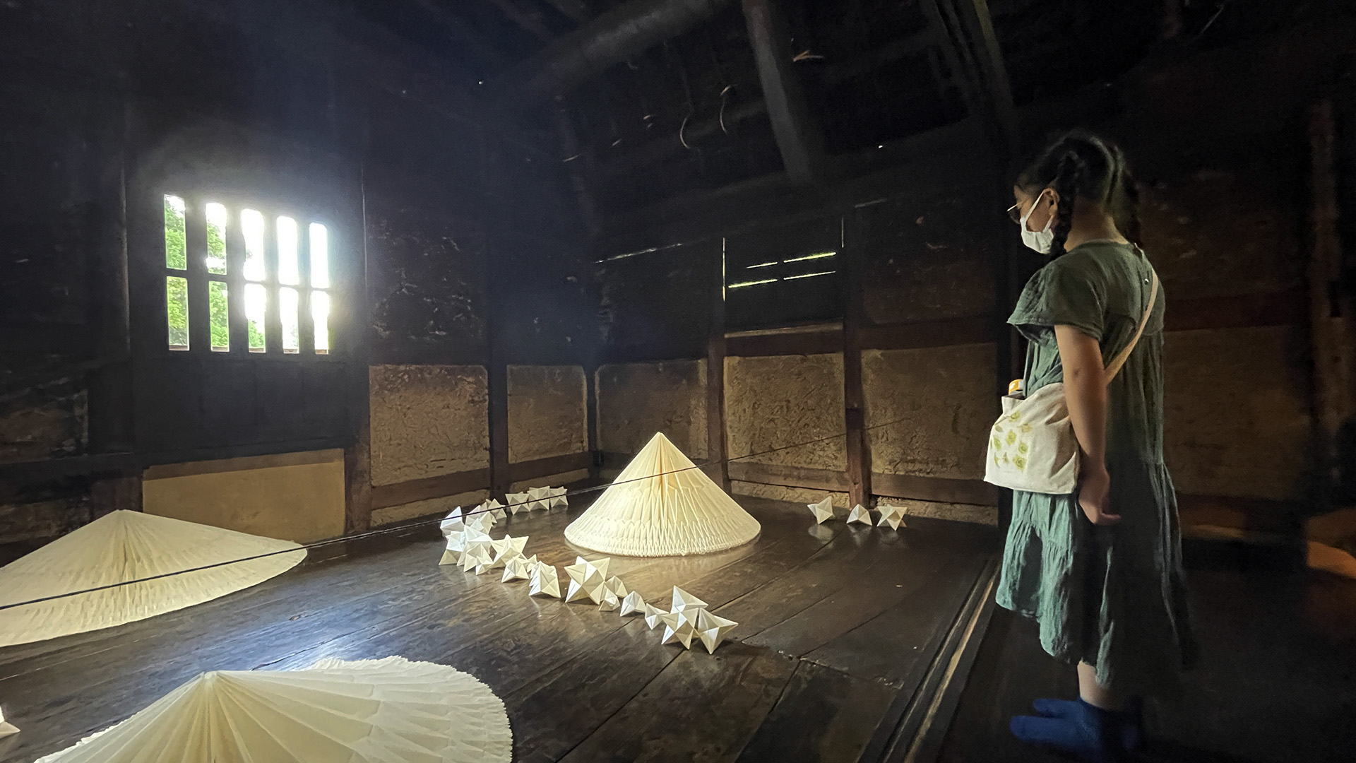 そして上がった薄暗い屋根裏にある折り紙作品。