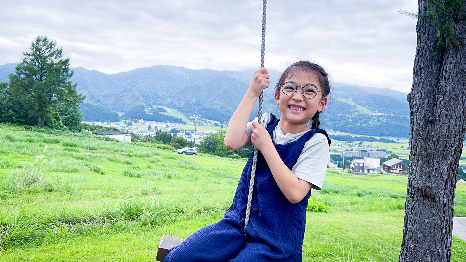 さっそくブランコを見つけて大自然 山おんな。
