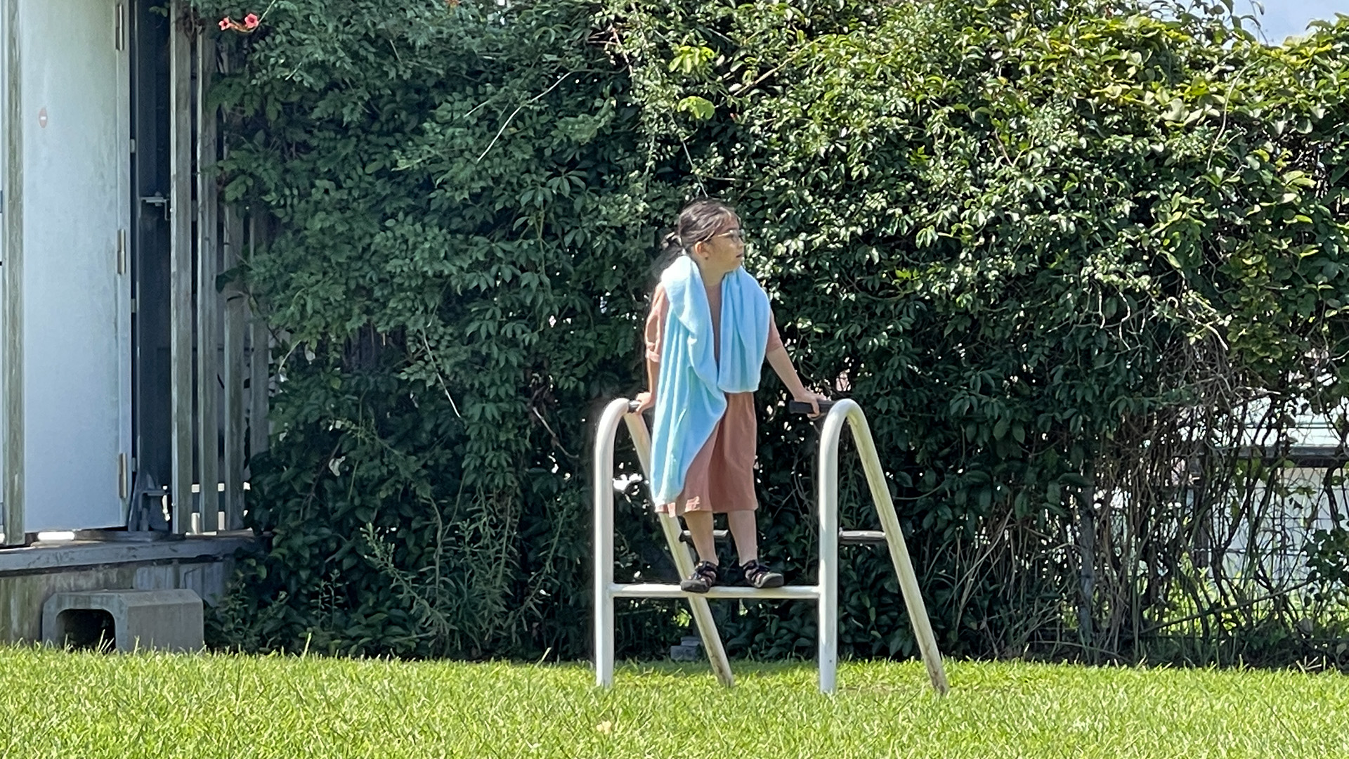 まだ泳げるとは言えないなぁ。 蹴伸びの練習。