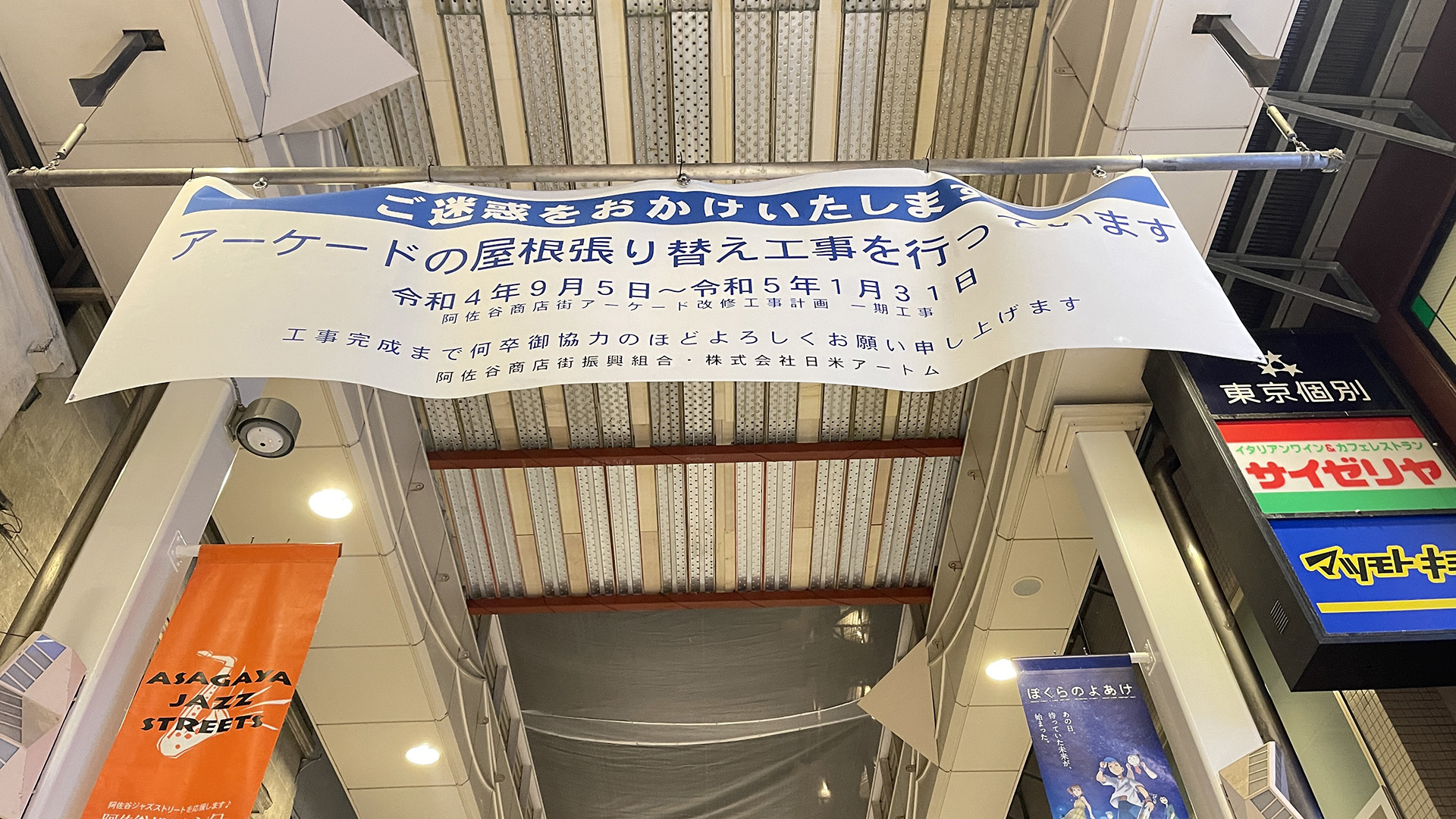 パール商店街は アーケードの架け替え工事をしています。