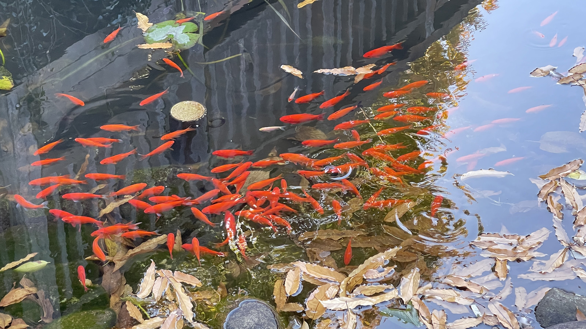 ここにはこんなにたくさんの金魚がいます。